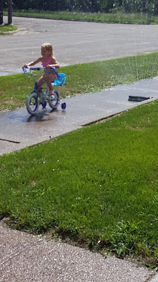 Am I ever jealous that I wasn't there to watch the kiddos have so much fun; especially bikes through sprinklers.